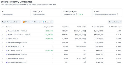 知名加密分析师Tom Tucker指出一个显著趋势:随着Forward Industries和DeFi Development Corp等机构积极建立SOL储备(合计持有总供应量2.4%,估值30亿美元),表明机构对Solana的信念正在增强。