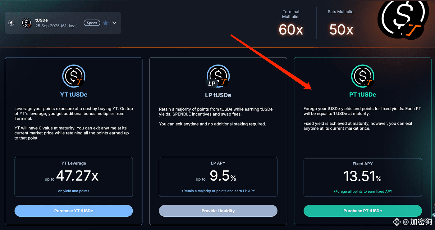 原理就是这个万能公式:1 tUSDe = 1 PT + 1 YT