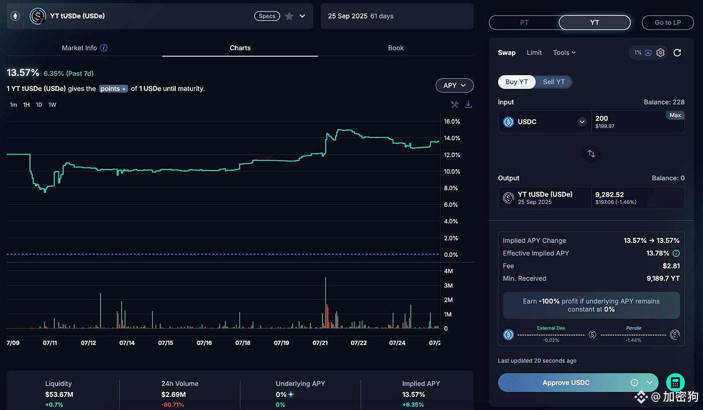 买入 YT = 放弃本金稳定回报、押注未来收益爆发 → 做空 PT 的稳健年化