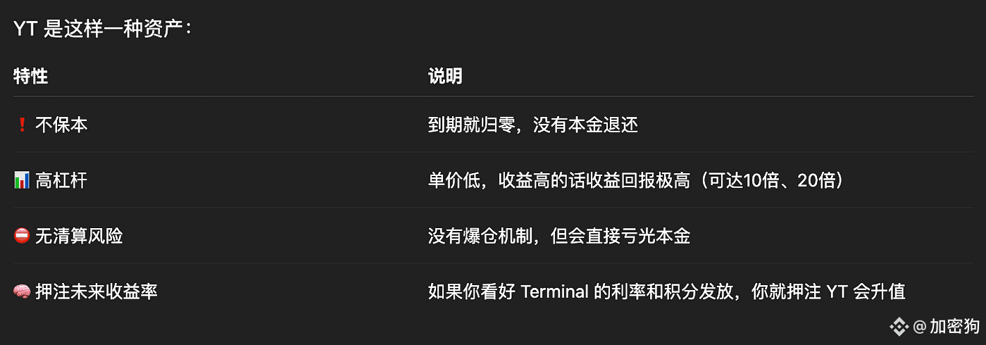 所以 YT 本质上是: “买入未来收益的可能性”,但这个未来可能是0,也可能是很多。