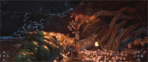 3、右手虫:右手虫位于盘丝洞-绝想崖土地庙附近,与左手边的怪手上镜子互动后会进入战斗。
