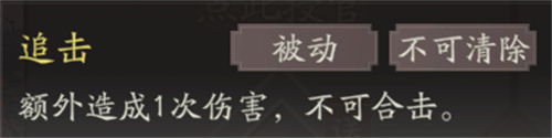 不走突骑兵线就必须升迁4才能入手的技能,实际效果为使用140%倍率的一击击杀目标后,触发追击,如果追击继续击杀则会触发第二次追击,第二次追击不再追加判定。