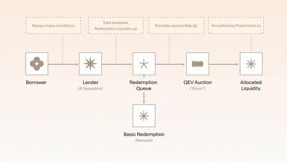 这种为稀缺资源拍卖优先权的设计,在概念上与区块链架构中的最大可提取价值( MEV ) 一脉相承。正如 MEV 拍卖允许验证者出售区块内交易排序权一样, QEV 为在固定资金流中的赎回排序创建了一个透明市场。在这两个系统中,价值并非来自底层资产本身,而是来自获取它的顺序。这使得 QEV 成为一项精妙的金融工程,它将一个久经考验的链上概念,应用于解决资产支持金融中的一个新问题。