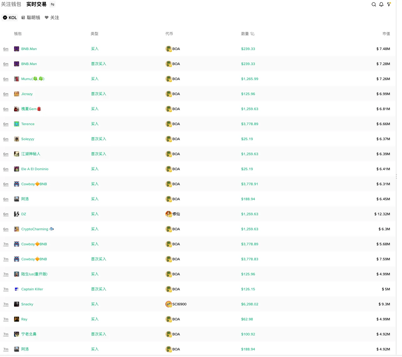 除了 Meme Rush 这样的扫链功能外,币安钱包还提供了决策工具——KOL监控列表。