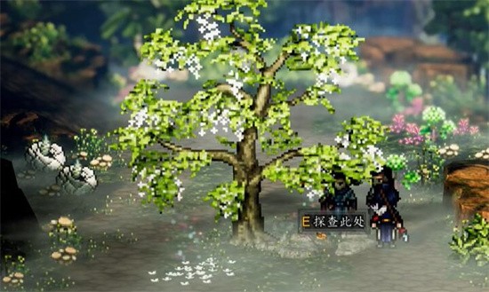 2、向右移动找到槐树,在这里有一个位置可以进行探查。