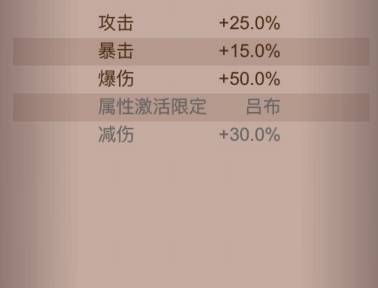 属性:ATK+25.0%,暴击+15.0%,爆伤+50.0%