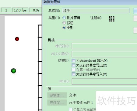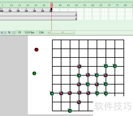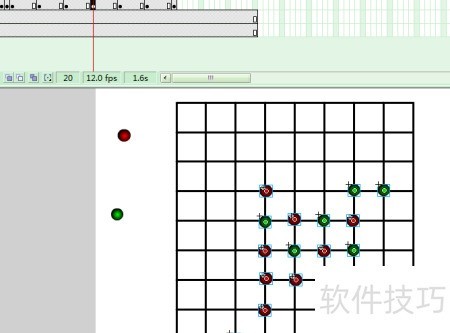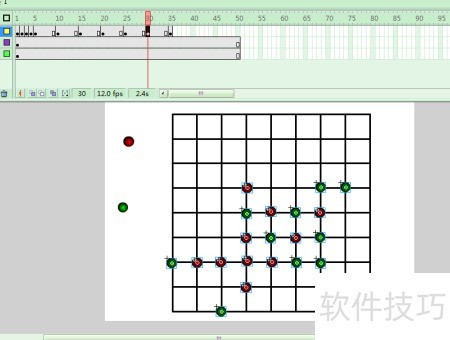 - 新建图层2,绘制红绿圆点并分别转为元件。