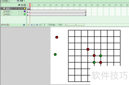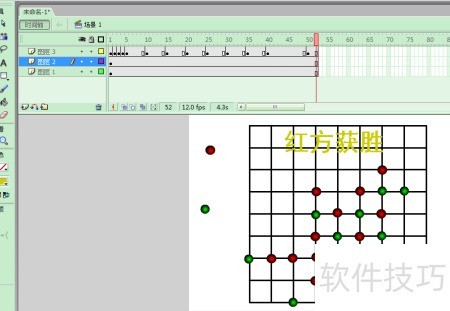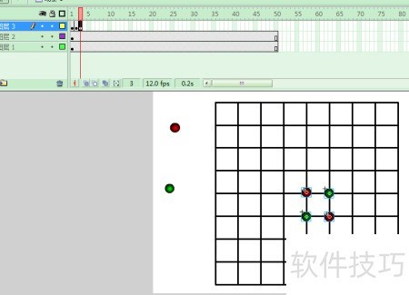- 将棋子元件分置图层3各帧,展现精彩五子棋对决。
