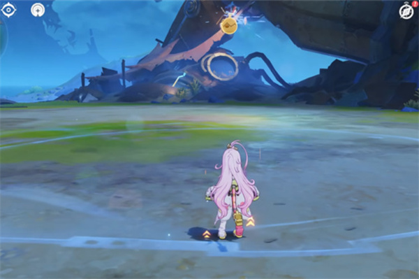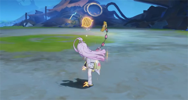 向前投掷造成水元素伤害,并牵引自身到目标位置,落点时造成范围水伤