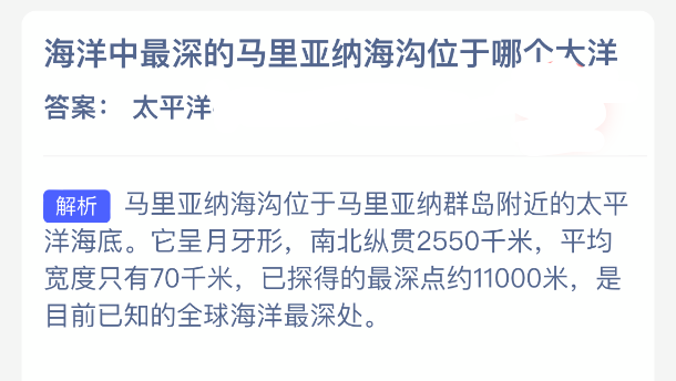 以上就是海洋中最深的马里亚纳海沟位于哪个大洋?神奇海洋今天答案最新2025年12月16日分享,更多相关攻略内容,请点击关注本站手游网更新!