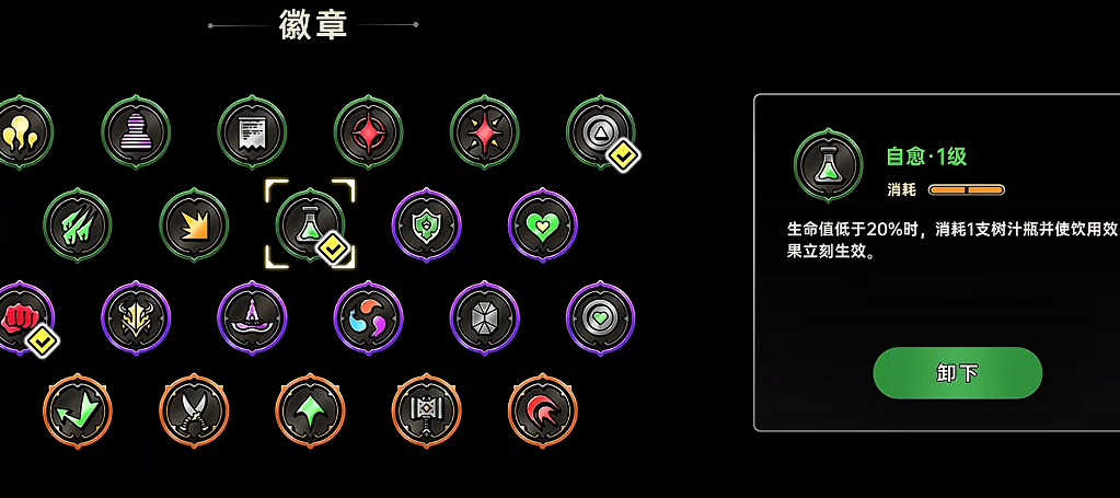如果还能在强化房间拿到普攻弹增加这个技能,那就会更厉害,但是这因为游戏中的女枪属于付费角色,首充6元才可以获得,所以如果是零氪玩家的话,在开荒阶段的BD搭配上面,大家也能在前期快速积攒资源,当然因为大家前期获得的资源是有限的,所以前期合理利用紫晶也很重要,大家可以通过NPC适当的升级一下主玩角色和天赋,再通过NPC打开预言,把徽章的容量升到2,接着解锁自愈装备,这样保证了刷图期间角色血量过低的话,会有自动回复的一个效果来增加玩家的容错率,等有足够的紫晶后,再把容量升到7,分别搭配上克星以及利息这两个徽章,这类徽章在开荒阶段对于上面提到的两个角色都比较趁手哦。