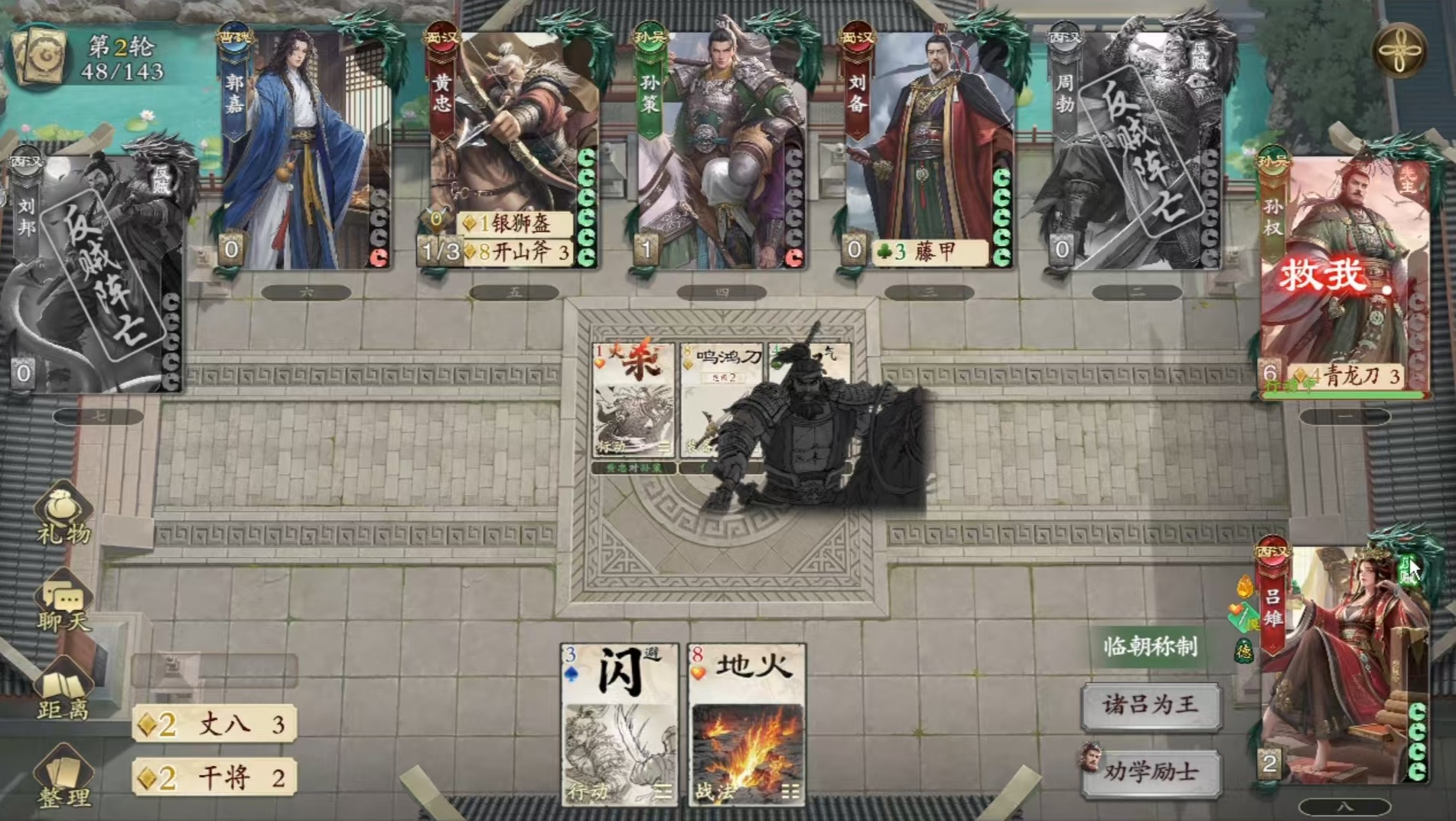 撇开这些比较繁杂的叙述,简单来说就是让手中的下一张能够对敌人造成伤害的杀,攻击范围无限,同时能够强命,也就是敌方不能用闪来抵消封禁,可以封他的技能直到本回合结束。贯穿则是无视对方的防具。因为现在八卦阵是比较烦人的道具,而有了这一效果就直接无视,伤害加1更是可以直接令对方残血。这是一个非常简单粗暴的菜刀技能。使用怒之后打一张杀,这张杀会直接变成命中对方三滴血,如果有两个怒,再杀过去就是四滴血,非常的强势。在武器方面可以配合羽扇、开山斧等,可以让伤害再加1,拥有这些武器的时候会让伤害更多,导致最后的输出效果极为恐怖,一次就能打出一个很可观的爆发。