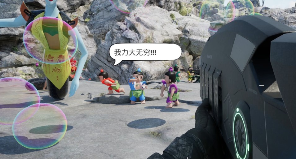 致敬中国经典动画片葫芦娃,游戏基于第一人称射击的FPS游戏模式,玩家扮演爷爷协同葫芦娃一起抵抗妖精的进攻。