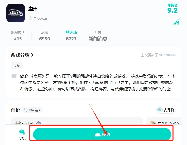 1、复制上方任意链接到虚环的官方页面,如taptap点击“预约”即可。