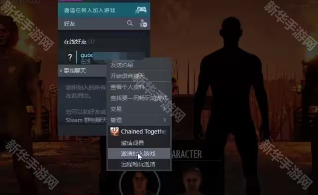 4、然后按下“Shift+Tab”打开Steam菜单,找到好友列表,右键好友点击“邀请加入游戏”;