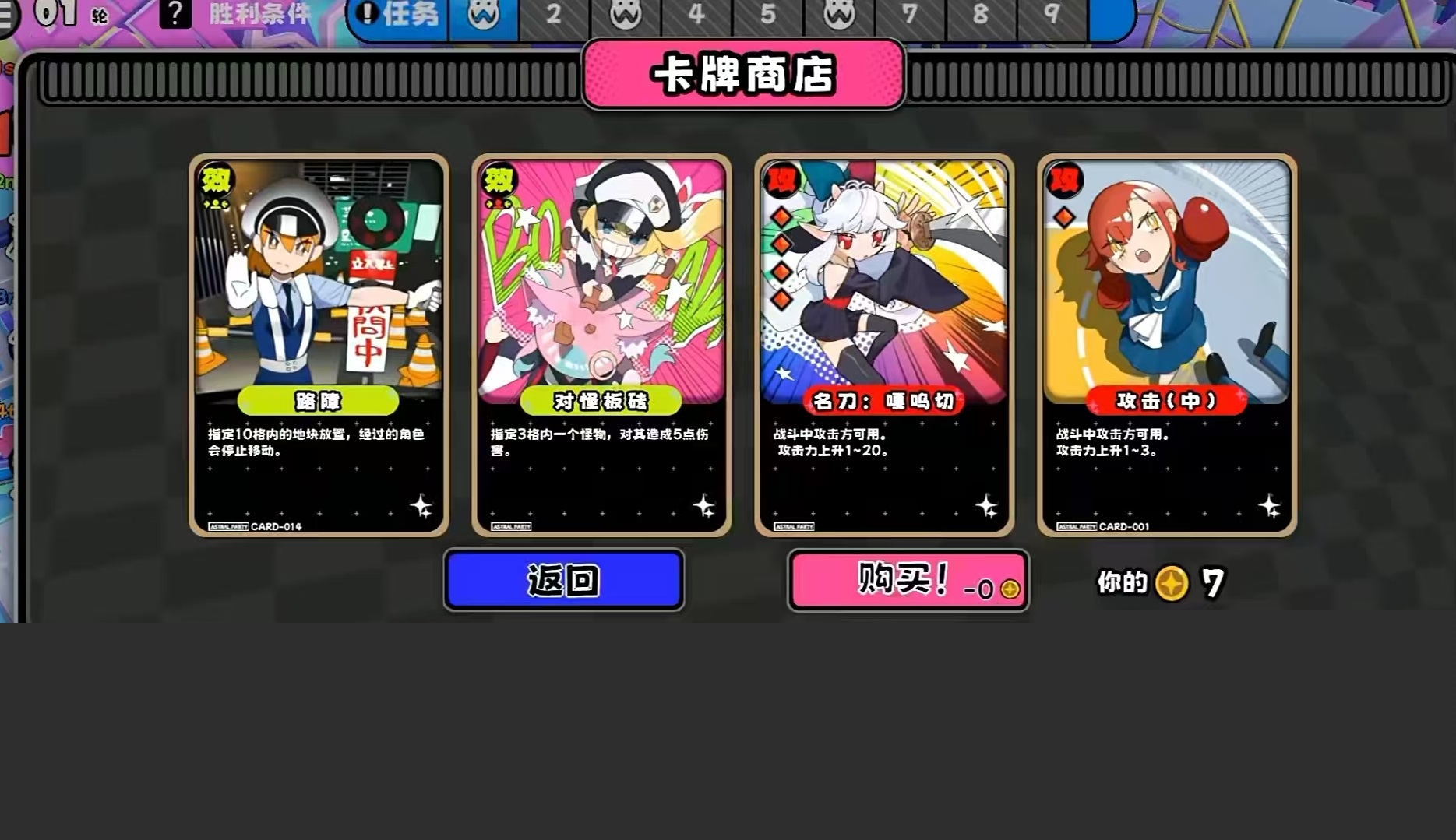 本作在玩法架构上借鉴经典大富翁框架,但进行了深度拓展:玩家通过轮流投掷骰子在棋盘地图上移动,途经不同功能地块——如事件格、战斗格、商店格与陷阱格等,触发对应随机效果。每位角色均配备专属主动技能与被动天赋,配合多类型卡牌系统(涵盖攻击、防御、增益、干扰等),形成高度动态的战术组合空间。整局对战强调即时决策与资源权衡,而非单纯数值碾压。