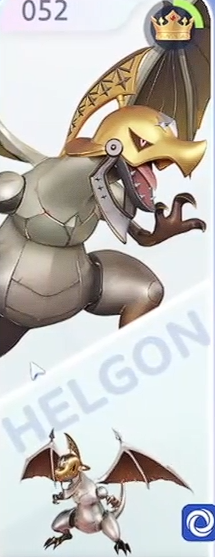 第二只为“大眼盔”,拥有双线进化分支:其一为“盔勇士”,主攻输出方向,进化后持重型大剑,可施展多段连续斩击并释放直线型剑气,强调单体穿透与节奏压制;另一支则进化为“盔卫士”,侧重中距离贴身压制,虽基础输出略低于前者,但凭借更高耐久与强制位移技能,在控场与持续作战方面更具优势。
