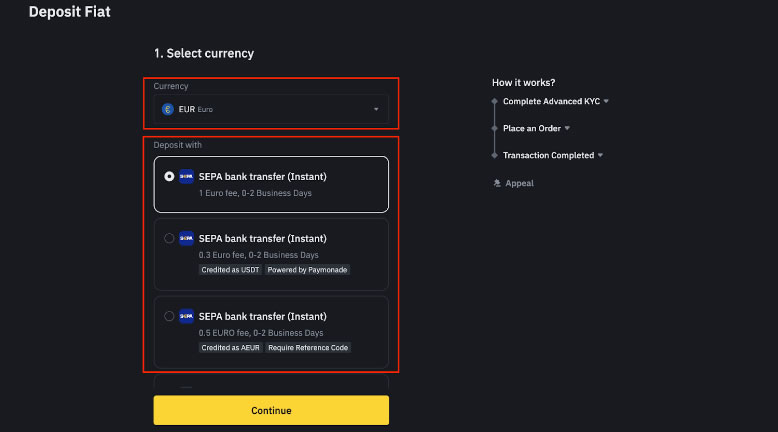 1. 登录币安账户(),在充值界面选择C2C交易选项。
