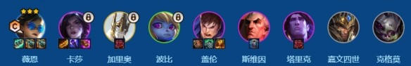 2、3杠5先追薇恩等德玛西亚二星(解锁加里奥,)后续4阶段上8开始d,全二之后可以根据来牌判断追三还是上9补通用五费卡(费德提克,奥恩等)。中期全二开出加里奥之后再转阵容体系牌。(需要留牌,跟换牌d牌操作比较多。)