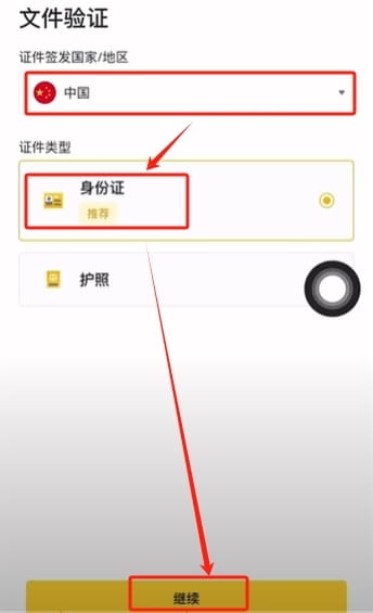 1. 中国大陆用户可选择护照、身份 件或驾 驶证进行KYC验证,国际用户流程类似