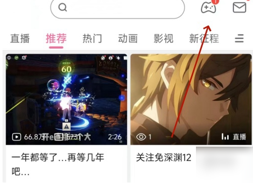 首先需要打开B站客户端或网页版,在界面右上角找到游戏中心入口图标。