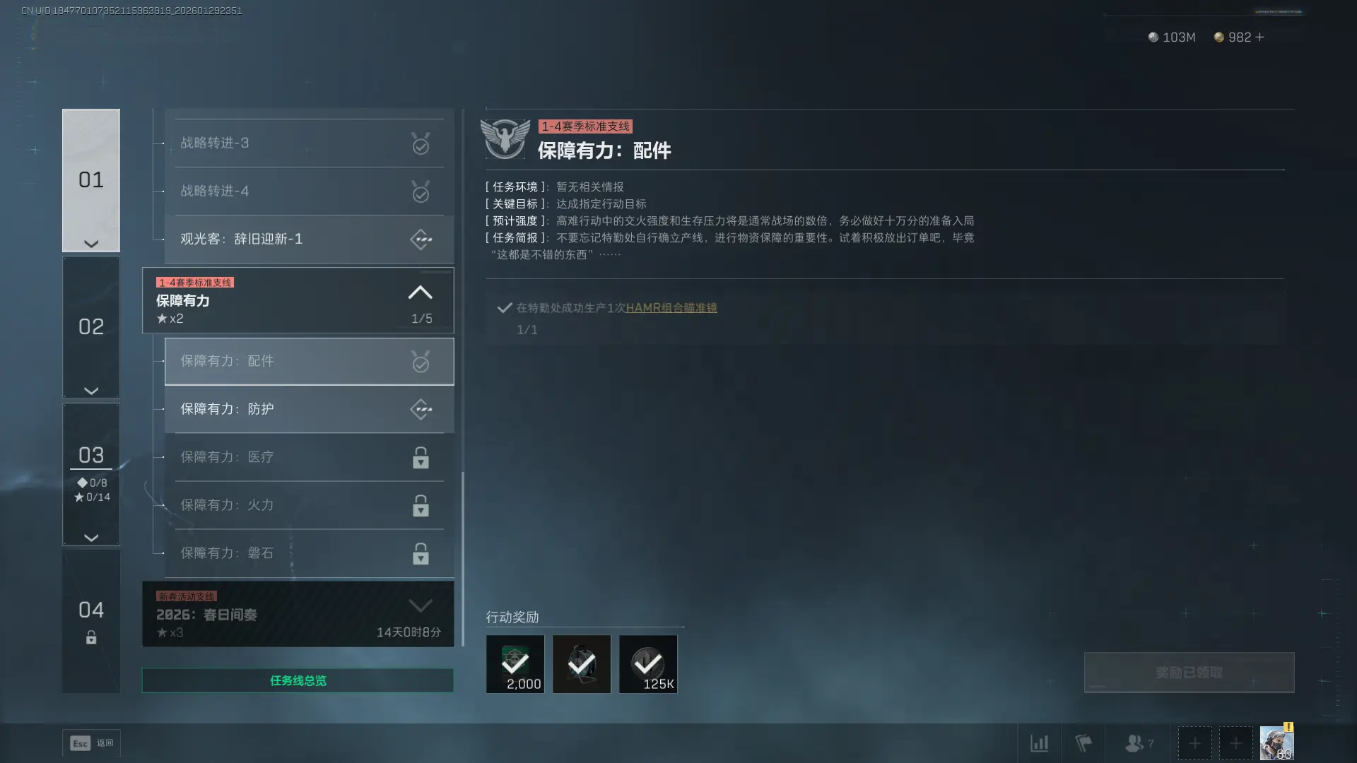 4、任务奖励:经验x2000、移动电缆x1、哈夫币x125000