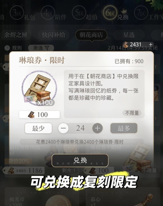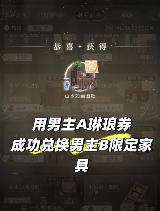 抽出的琳琅券可以切换男主,来兑换自推的限定家具