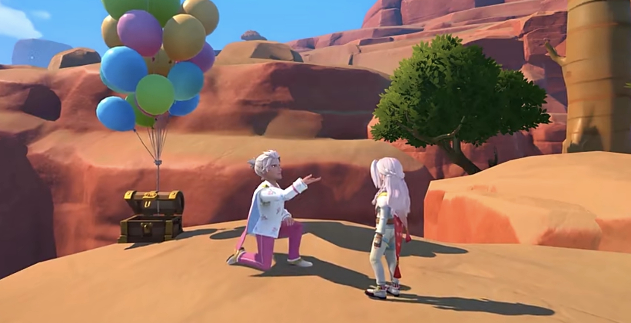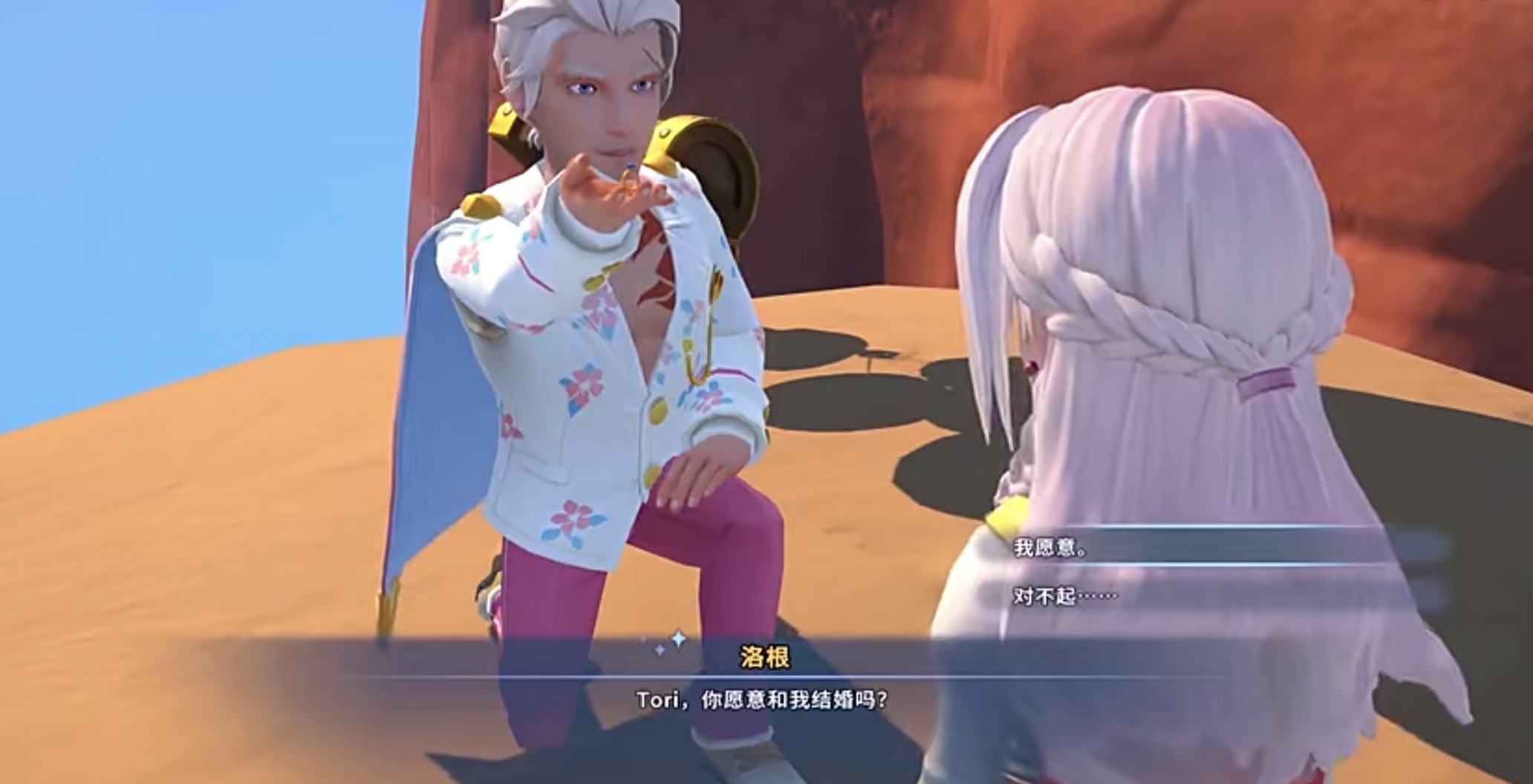 随后剧情进入高潮段落:装有戒指的宝匣由氦气球牵引升空,但受沙漠突发侧风影响发生偏移。此时洛根将迅速拔枪射击气球连接绳,在精准命中瞬间确保宝匣平稳坠落至玩家正前方一米范围内。紧接着他单膝触地,以标准绅士礼节完成正式告白,全程伴有环境光效变化与专属BGM切入。若玩家选择接受,则双方关系升级为“法定伴侣”,解锁双人协同技能、共用住宅权限及专属日常事件链。