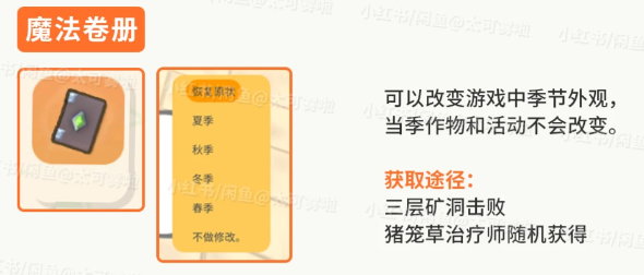 可以改变游戏中季节外观,当季作物和活动不会改变。
