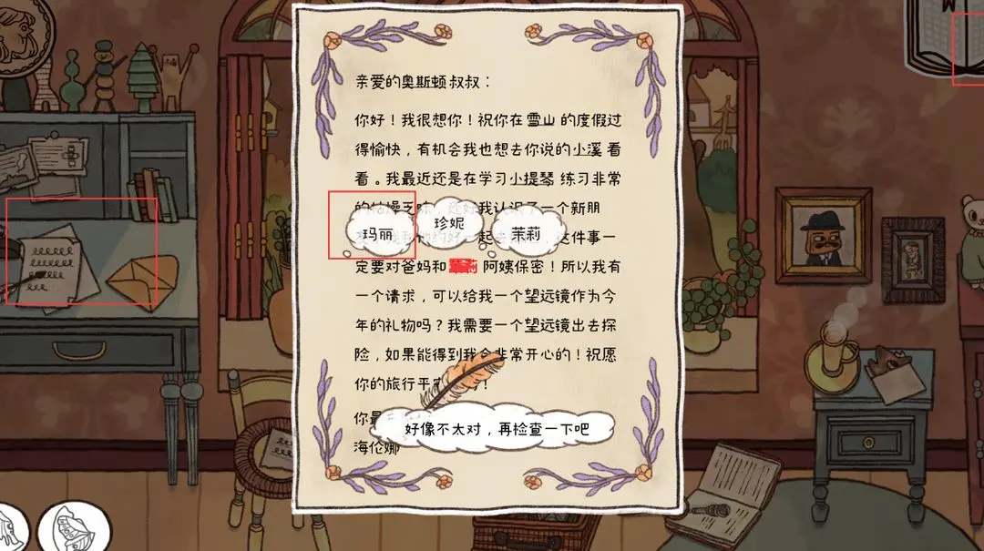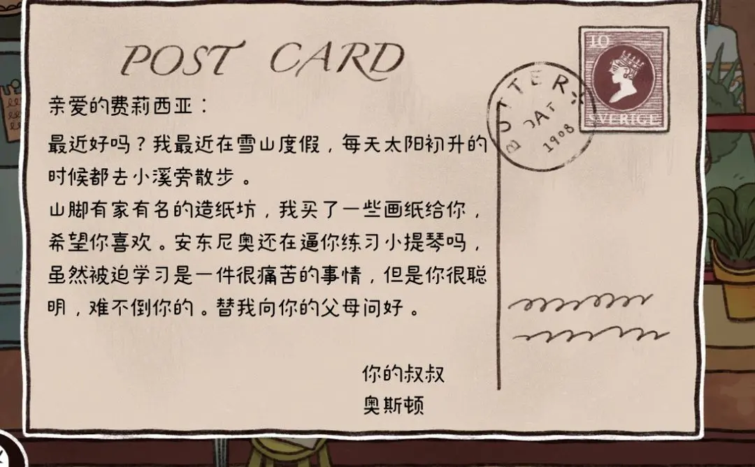 8、g09查看日记变化,随后点及桌上信纸并完成书信(提示是g08年的明信片),解锁新场景“10年”