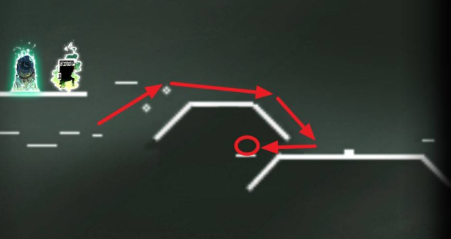 15、破坏挡路的板块,尽头用折返跳搭配能量球的冲刺效果跳到左上平台,激活机关