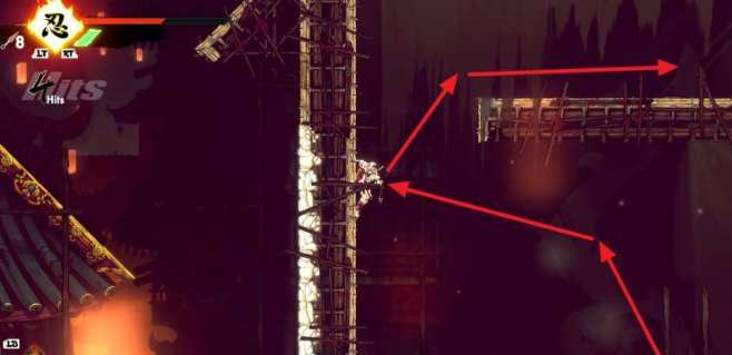 18、通过中间的紫色灯笼下去往右走,沿着平台逐渐跳到右侧底层