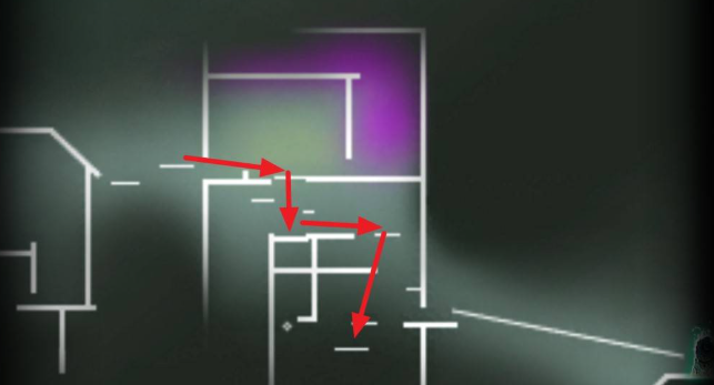 17、继续往右走,进入右边新的楼房时会发现右边有个紫色区域,目前无法过去,直接无视