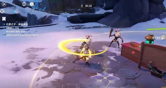 进入原神阿贝多绘想游迹关卡后,首先迎来的是探索解谜阶段。玩家无需急于战斗,跟随场景内的指引箭头前进即可。很快会遇到一处断桥,这是关卡中的一个关键机关。玩家需要操控阿贝多,在断桥的桥面上精准释放元素战技。成功释放后,会生成一个抬升平台,借助这个平台就能轻松飞跃到断桥对面,继续向核心战斗区域推进。这个机关并不复杂,但务必注意元素战技的释放位置。