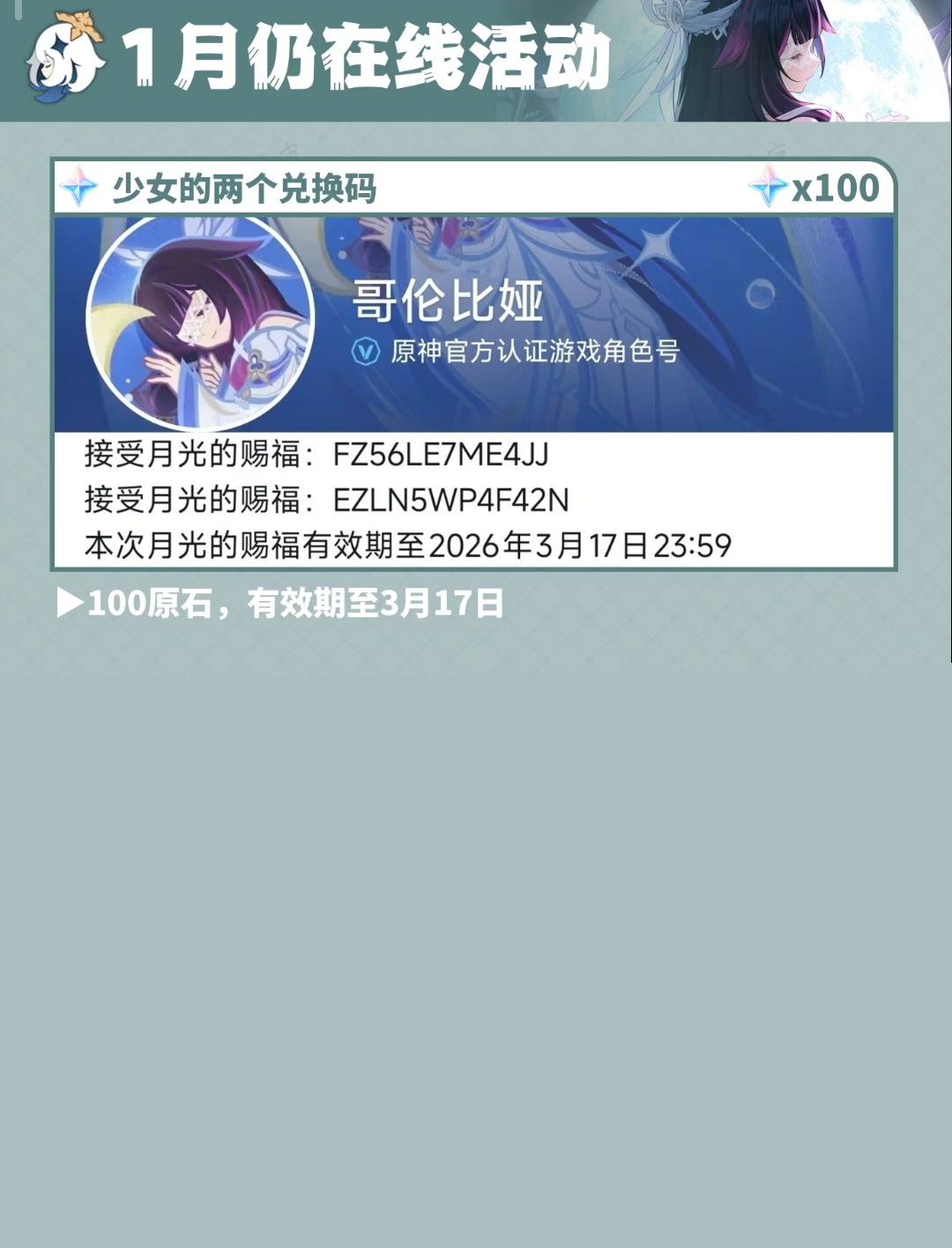 本次月光的赐福有效期至2026年3月17日