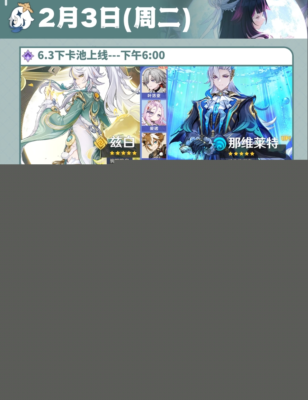 6.3下卡池上线--下午6点 兹白与那维莱特
