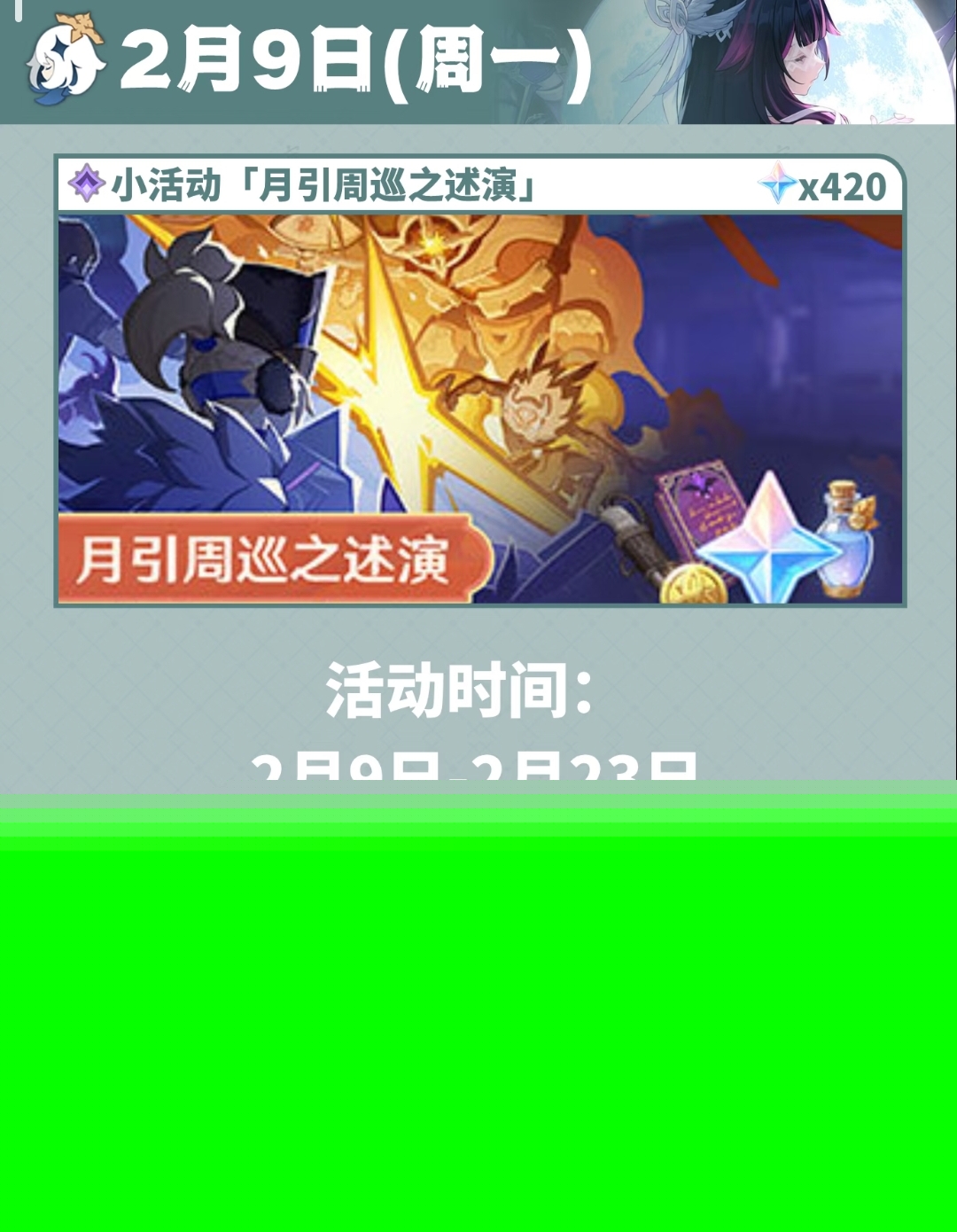 2月9日(周一)小活动 [月引周巡之述演] 420原石
