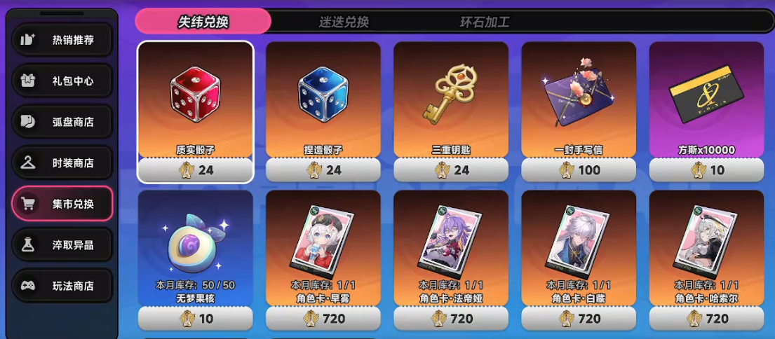 1、集市商店定向兑换:玩家在卡池环节掷骰进入限定集市场景后,可使用集市专属兑换券,在集市商店内直接换取三重钥匙。该路径稳定可控,是中期资源补充的重要手段。