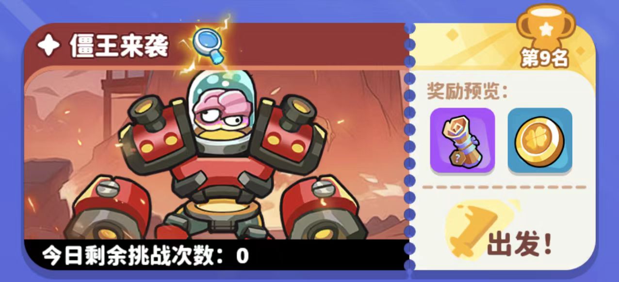 该玩法每日提供3次免费挑战机会,次数耗尽后可消耗挑战券继续参与。值得注意的是,挑战失败不会扣除次数或挑战券,降低了试错成本。进入关卡前,玩家可查看僵王的基础属性,包括攻击方式、抗性类型、核心弱点及本关特定通关要求。这些信息是制定布阵方案的关键依据,需结合实际调整植物组合。