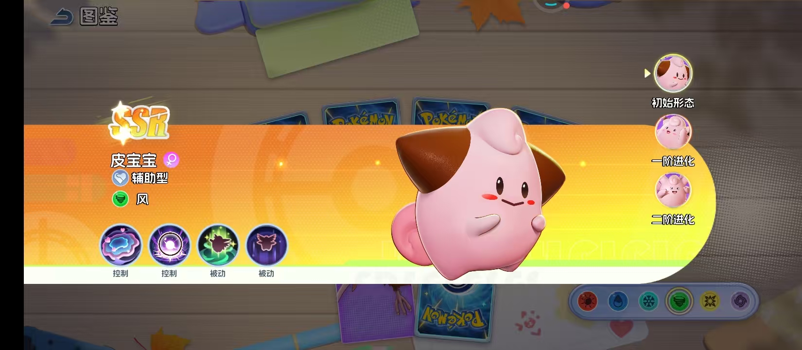 起始形态为皮宝宝,粉红色圆润体型,属风属性。其基础技能组包含两个主动控制技与一个被动增益技,可在战斗初期为队友提供关键控场与状态支援。尽管成长性尚处初期,但已具备清晰的辅助雏形,是队伍中兼具亲和力与战术价值的起点单位。
