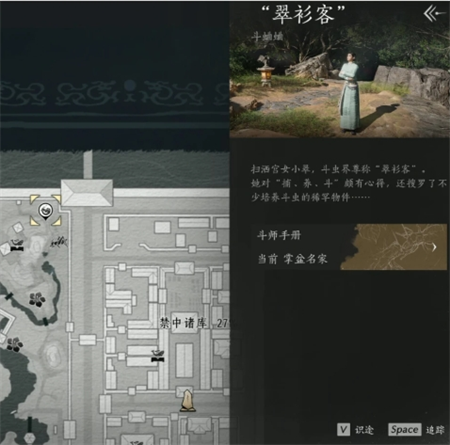 2、来到地图右上角找到翠衫客开启斗师手册,完成任务可以获得袅袅