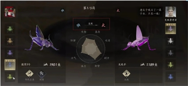 1、观察对手蛐蛐属性:根据对方特点调整出战蛐蛐(五行克制)