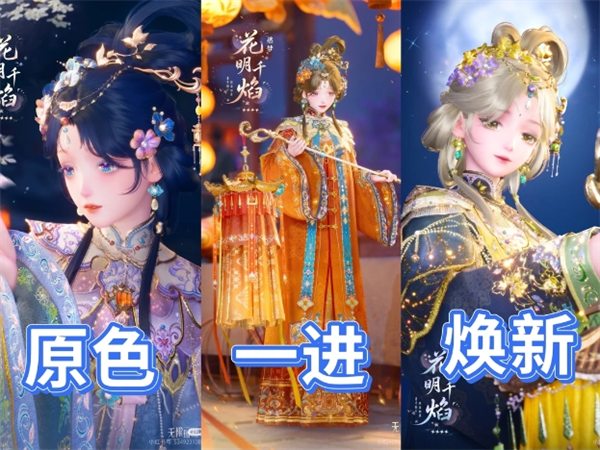 「花明干焰」进化后可获得套装「花明千焰·燃梦」,焕新后可获得套装「花明干焰·遐思」。