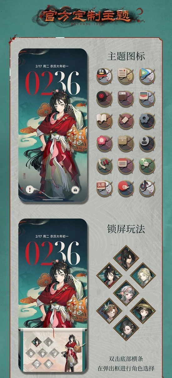 1个手机主题、8位神秘学家壁纸及7位神秘学家息屏轻驻司辰的屏幕,可自主选择切换所展示的内容。