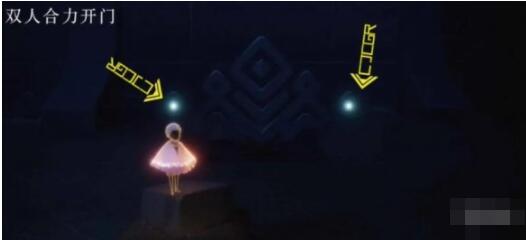2、然后通过双人合力打开门,即可在前面的悬浮台看到白金先祖。