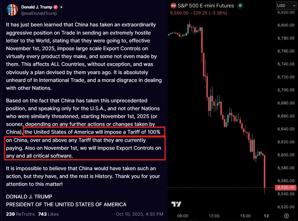 10月10日 - 特朗普威胁对华征收100%关税