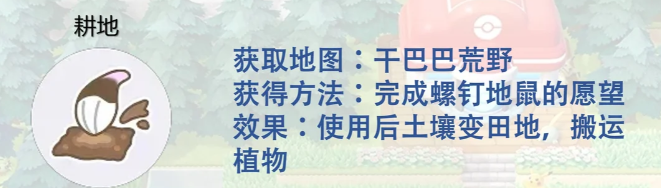 效果:使用后土壤变田地,搬运植物