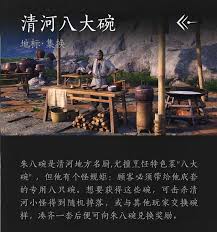 有一些特定的地图区域与清河八大碗的获取紧密相关。比如清河古镇,这里是美食文化的重要发源地,也是清河八大碗的制作传承之地。玩家在探索古镇时,要留意各个店铺、摊位以及民居。可能会在某个不起眼的角落里发现制作清河八大碗的配方残页,或者遇到知晓八大碗制作工艺的老人,通过与他们交流获取更多线索。同时,一些隐藏的地下室、阁楼等地方也可能藏有关于八大碗的珍贵物品或任务道具,不要错过任何一个可探索的空间。