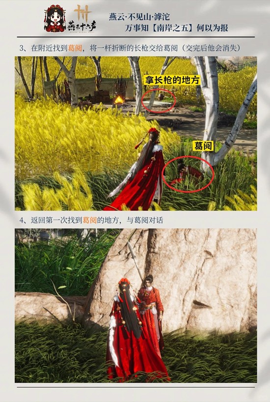 3、在附近找到葛阅,将一杆折断的长枪交给葛阅(交完后他会消失)