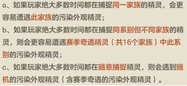 1、污染:S1赛季的奇遇事件为“噩梦枷锁”,触发事件时会刷新出污染外观的噩梦精灵,与玩家连续捕捉情况有关: